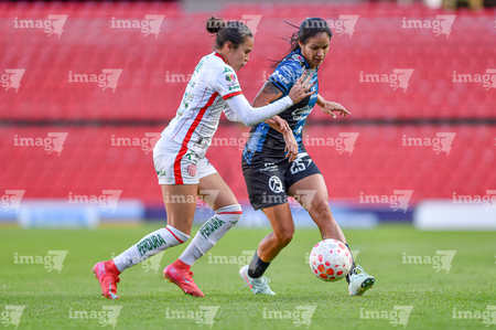Querétaro, Querétaro, 3 de octubre de 2025. Lady Andrade y Ana Torres, durante el partido correspondiente a la jornada 14 del torneo Apertura 2025 de la Liga BBVA MX Femenil, entre el Club Querétaro y las Centellas del Necaxa, realizado en La Corregidora. Foto: Imago7/