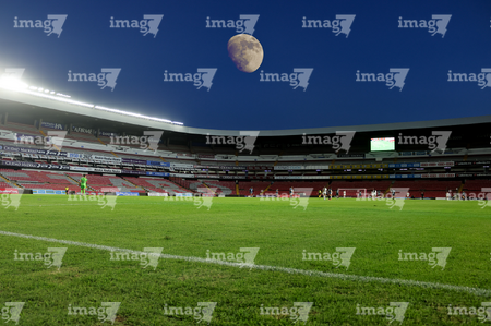 Querétaro, Querétaro, 3 de octubre de 2025. Panorámica del estadio con la luna (doble exposición), durante el partido correspondiente a la jornada 14 del torneo Apertura 2025 de la Liga BBVA MX Femenil, entre el Club Querétaro y las Centellas del Necaxa, realizado en La Corregidora. Foto: Imago7/ Hugo Martinez