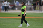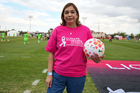 Ciudad Juárez, Chihuahua, 11 de octubre de 2025. Embajadora de la Campaña Rosa para la concientización del Cancer de Mama, durante el partido correspondiente a la jornada 15 del torneo Apertura 2025 de la Liga BBVA MX Femenil, entre las Bravas de FC Juárez y las Centellas del Necaxa, realizado en realizado en el Instituto Tecnológico de Ciudad Juárez. Foto: Imago7/ Alejandro Rodríguez