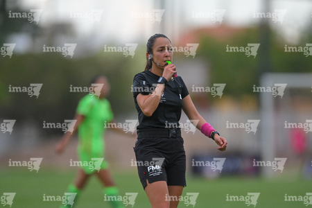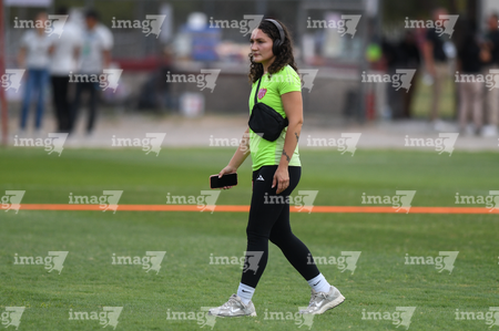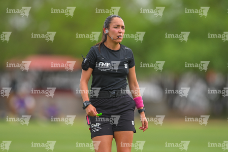 Ciudad Juárez, Chihuahua, 11 de octubre de 2025. Ana Paola Hernández , árbitro central, durante el partido correspondiente a la jornada 15 del torneo Apertura 2025 de la Liga BBVA MX Femenil, entre las Bravas de FC Juárez y las Centellas del Necaxa, realizado en realizado en el Instituto Tecnológico de Ciudad Juárez. Foto: Imago7/ José Zamora