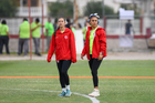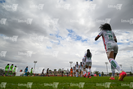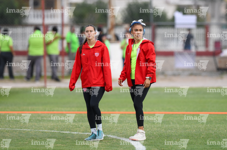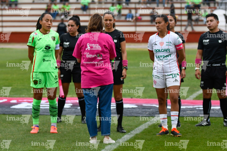 Ciudad Juárez, Chihuahua, 11 de octubre de 2025. Protocolo, durante el partido correspondiente a la jornada 15 del torneo Apertura 2025 de la Liga BBVA MX Femenil, entre las Bravas de FC Juárez y las Centellas del Necaxa, realizado en realizado en el Instituto Tecnológico de Ciudad Juárez. Foto: Imago7/ José Zamora
