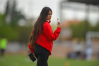 Ciudad Juárez, Chihuahua, 11 de octubre de 2025. Ana Torres, durante el partido correspondiente a la jornada 15 del torneo Apertura 2025 de la Liga BBVA MX Femenil, entre las Bravas de FC Juárez y las Centellas del Necaxa, realizado en realizado en el Instituto Tecnológico de Ciudad Juárez. Foto: Imago7/ Alejandro Rodríguez