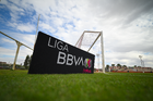 Ciudad Juárez, Chihuahua, 11 de octubre de 2025. Banderín de la Campaña Rosa para la concientización del Cáncer de Mama, durante el partido correspondiente a la jornada 15 del torneo Apertura 2025 de la Liga BBVA MX Femenil, entre las Bravas de FC Juárez y las Centellas del Necaxa, realizado en realizado en el Instituto Tecnológico de Ciudad Juárez. Foto: Imago7/ José Zamora