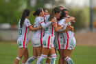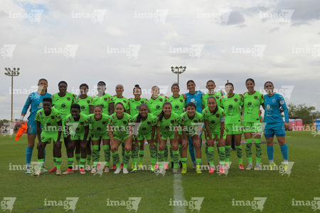 Ciudad Juárez, Chihuahua, 11 de octubre de 2025. Foto de equipo del Necaxa, durante el partido correspondiente a la jornada 15 del torneo Apertura 2025 de la Liga BBVA MX Femenil, entre las Bravas de FC Juárez y las Centellas del Necaxa, realizado en realizado en el Instituto Tecnológico de Ciudad Juárez. Foto: Imago7/ José Zamora