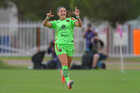 Ciudad Juárez, Chihuahua, 11 de octubre de 2025. Norma Palafox en festejo de gol, durante el partido correspondiente a la jornada 15 del torneo Apertura 2025 de la Liga BBVA MX Femenil, entre las Bravas de FC Juárez y las Centellas del Necaxa, realizado en realizado en el Instituto Tecnológico de Ciudad Juárez. Foto: Imago7/ Alejandro Rodríguez