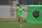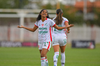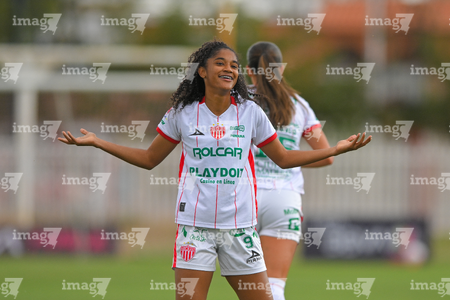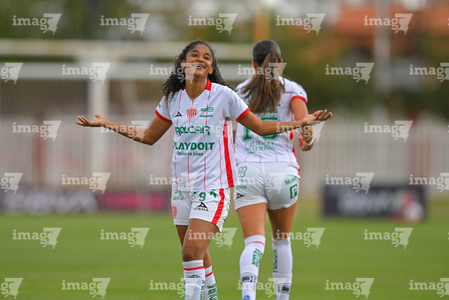 Ciudad Juárez, Chihuahua, 11 de octubre de 2025. Winibian Peralta en festejo de gol, durante el partido correspondiente a la jornada 15 del torneo Apertura 2025 de la Liga BBVA MX Femenil, entre las Bravas de FC Juárez y las Centellas del Necaxa, realizado en realizado en el Instituto Tecnológico de Ciudad Juárez. Foto: Imago7/ Alejandro Rodríguez