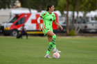 Ciudad Juárez, Chihuahua, 11 de octubre de 2025. Mar Moya, durante el partido correspondiente a la jornada 15 del torneo Apertura 2025 de la Liga BBVA MX Femenil, entre las Bravas de FC Juárez y las Centellas del Necaxa, realizado en realizado en el Instituto Tecnológico de Ciudad Juárez. Foto: Imago7/ José Zamora
