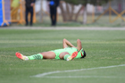Ciudad Juárez, Chihuahua, 11 de octubre de 2025. Dayana Martin resultó lesiónada, durante el partido correspondiente a la jornada 15 del torneo Apertura 2025 de la Liga BBVA MX Femenil, entre las Bravas de FC Juárez y las Centellas del Necaxa, realizado en realizado en el Instituto Tecnológico de Ciudad Juárez. Foto: Imago7/ José Zamora