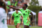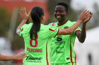 Ciudad Juárez, Chihuahua, 11 de octubre de 2025. Julitha Singano en festejo de gol, durante el partido correspondiente a la jornada 15 del torneo Apertura 2025 de la Liga BBVA MX Femenil, entre las Bravas de FC Juárez y las Centellas del Necaxa, realizado en realizado en el Instituto Tecnológico de Ciudad Juárez. Foto: Imago7/ José Zamora