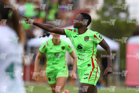 Ciudad Juárez, Chihuahua, 11 de octubre de 2025. Julitha Singano en festejo de gol, durante el partido correspondiente a la jornada 15 del torneo Apertura 2025 de la Liga BBVA MX Femenil, entre las Bravas de FC Juárez y las Centellas del Necaxa, realizado en realizado en el Instituto Tecnológico de Ciudad Juárez. Foto: Imago7/ Alejandro Rodríguez