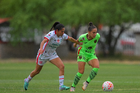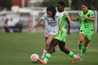 Ciudad Juárez, Chihuahua, 11 de octubre de 2025. María Acosta, durante el partido correspondiente a la jornada 15 del torneo Apertura 2025 de la Liga BBVA MX Femenil, entre las Bravas de FC Juárez y las Centellas del Necaxa, realizado en realizado en el Instituto Tecnológico de Ciudad Juárez. Foto: Imago7/ Alejandro Rodríguez