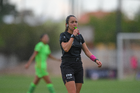 Ciudad Juárez, Chihuahua, 11 de octubre de 2025. Corina Gómez, durante el partido correspondiente a la jornada 15 del torneo Apertura 2025 de la Liga BBVA MX Femenil, entre las Bravas de FC Juárez y las Centellas del Necaxa, realizado en realizado en el Instituto Tecnológico de Ciudad Juárez. Foto: Imago7/ José Zamora
