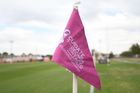 Ciudad Juárez, Chihuahua, 11 de octubre de 2025. Banderín de tiro de esquina de la Campaña Rosa para la concientización del Cancer de Mama, durante el partido correspondiente a la jornada 15 del torneo Apertura 2025 de la Liga BBVA MX Femenil, entre las Bravas de FC Juárez y las Centellas del Necaxa, realizado en realizado en el Instituto Tecnológico de Ciudad Juárez. Foto: Imago7/ Alejandro Rodríguez