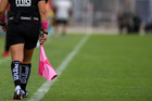 Ciudad Juárez, Chihuahua, 11 de octubre de 2025. Bandera de árbitro asistente por la Campaña Rosa para la concientización del Cancer de Mama, durante el partido correspondiente a la jornada 15 del torneo Apertura 2025 de la Liga BBVA MX Femenil, entre las Bravas de FC Juárez y las Centellas del Necaxa, realizado en realizado en el Instituto Tecnológico de Ciudad Juárez. Foto: Imago7/ Alejandro Rodríguez