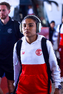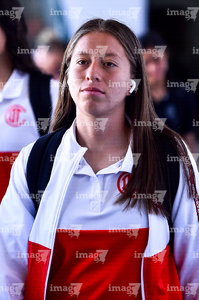 San Luis Potosí, San Luis Potosí, 12 de octubre de 2025. Protocolo, durante el partido correspondiente a la jornada 15 del torneo Apertura 2025 de la Liga BBVA MX Femenil, entre el Atlético San Luis y las Diablas Rojas del Toluca, realizado en el estadio Alfonso Lastras. Foto: Imago7/ Olimpia Puga