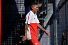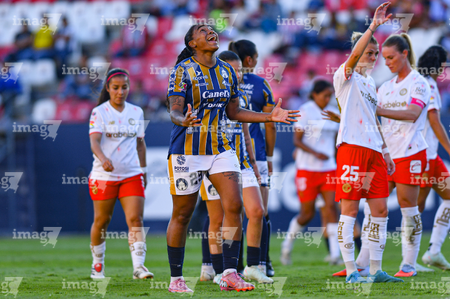 San Luis Potosí, San Luis Potosí, 12 de octubre de 2025. Shanice Van De Sanden en lamento, durante el partido correspondiente a la jornada 15 del torneo Apertura 2025 de la Liga BBVA MX Femenil, entre el Atlético San Luis y las Diablas Rojas del Toluca, realizado en el estadio Alfonso Lastras. Foto: Imago7/ Hugo Martinez