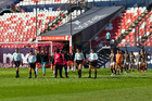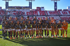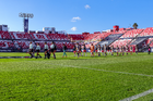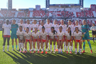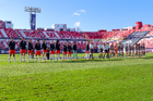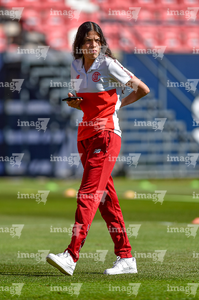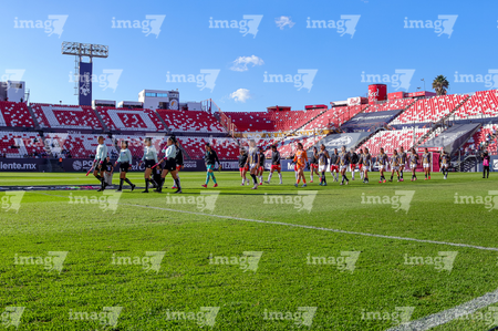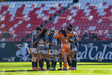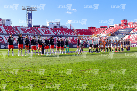 San Luis Potosí, San Luis Potosí, 12 de octubre de 2025. Protocolo, durante el partido correspondiente a la jornada 15 del torneo Apertura 2025 de la Liga BBVA MX Femenil, entre el Atlético San Luis y las Diablas Rojas del Toluca, realizado en el estadio Alfonso Lastras. Foto: Imago7/ Hugo Martinez