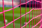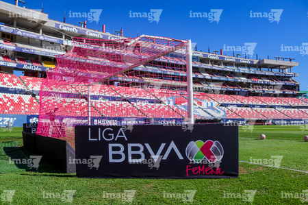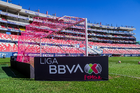 San Luis Potosí, San Luis Potosí, 12 de octubre de 2025. Red de porteria de la Campaña Rosa para la concientización del Cáncer de Mama, durante el partido correspondiente a la jornada 15 del torneo Apertura 2025 de la Liga BBVA MX Femenil, entre el Atlético San Luis y las Diablas Rojas del Toluca, realizado en el estadio Alfonso Lastras. Foto: Imago7/ Hugo Martinez