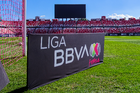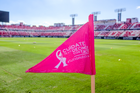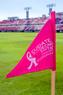 San Luis Potosí, San Luis Potosí, 12 de octubre de 2025. Banderin de tiro de esquina de la Campaña Rosa para la concientización del Cáncer de Mama, durante el partido correspondiente a la jornada 15 del torneo Apertura 2025 de la Liga BBVA MX Femenil, entre el Atlético San Luis y las Diablas Rojas del Toluca, realizado en el estadio Alfonso Lastras. Foto: Imago7/ Hugo Martinez