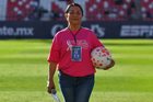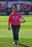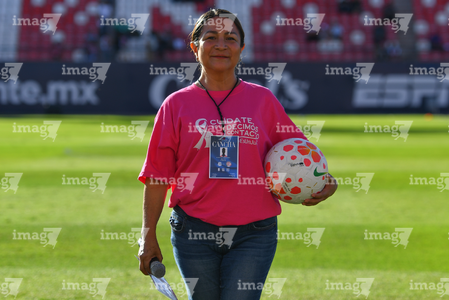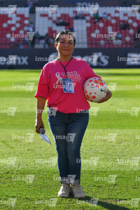 San Luis Potosí, San Luis Potosí, 12 de octubre de 2025. Embajadora de la Campaña Rosa para la concientización del Cáncer de Mama, durante el partido correspondiente a la jornada 15 del torneo Apertura 2025 de la Liga BBVA MX Femenil, entre el Atlético San Luis y las Diablas Rojas del Toluca, realizado en el estadio Alfonso Lastras. Foto: Imago7/ Olimpia Puga
