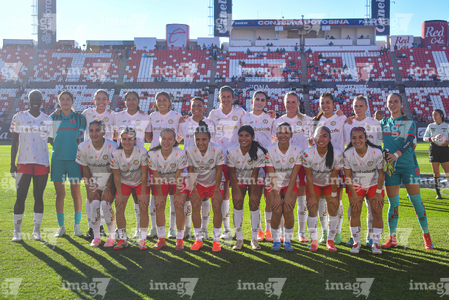 San Luis Potosí, San Luis Potosí, 12 de octubre de 2025. Foto de equipo de Atlético San Luis, durante el partido correspondiente a la jornada 15 del torneo Apertura 2025 de la Liga BBVA MX Femenil, entre el Atlético San Luis y las Diablas Rojas del Toluca, realizado en el estadio Alfonso Lastras. Foto: Imago7/ Olimpia Puga