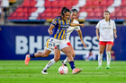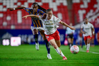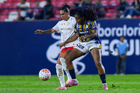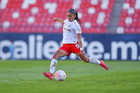 San Luis Potosí, San Luis Potosí, 12 de octubre de 2025. Abby Erceg, durante el partido correspondiente a la jornada 15 del torneo Apertura 2025 de la Liga BBVA MX Femenil, entre el Atlético San Luis y las Diablas Rojas del Toluca, realizado en el estadio Alfonso Lastras. Foto: Imago7/ Hugo Martinez