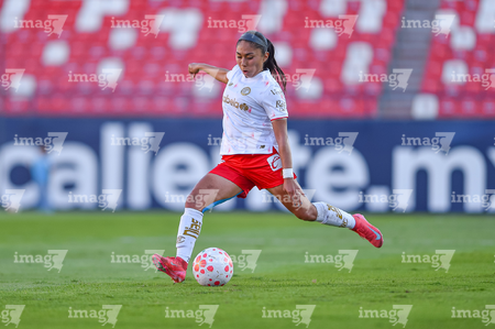 San Luis Potosí, San Luis Potosí, 12 de octubre de 2025. Itzel Muñoz, durante el partido correspondiente a la jornada 15 del torneo Apertura 2025 de la Liga BBVA MX Femenil, entre el Atlético San Luis y las Diablas Rojas del Toluca, realizado en el estadio Alfonso Lastras. Foto: Imago7/ Olimpia Puga