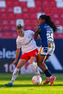 San Luis Potosí, San Luis Potosí, 12 de octubre de 2025. Amina Bello y Victoria López, durante el partido correspondiente a la jornada 15 del torneo Apertura 2025 de la Liga BBVA MX Femenil, entre el Atlético San Luis y las Diablas Rojas del Toluca, realizado en el estadio Alfonso Lastras. Foto: Imago7/ Olimpia Puga