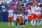 San Luis Potosí, San Luis Potosí, 12 de octubre de 2025. Jugadoras del Atlético de San Luis femenil, durante el partido correspondiente a la jornada 15 del torneo Apertura 2025 de la Liga BBVA MX Femenil, entre el Atlético San Luis y las Diablas Rojas del Toluca, realizado en el estadio Alfonso Lastras. Foto: Imago7/ Olimpia Puga