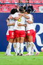 San Luis Potosí, San Luis Potosí, 12 de octubre de 2025. Jugadoras del Toluca femenil en festejo de gol, durante el partido correspondiente a la jornada 15 del torneo Apertura 2025 de la Liga BBVA MX Femenil, entre el Atlético San Luis y las Diablas Rojas del Toluca, realizado en el estadio Alfonso Lastras. Foto: Imago7/ Hugo Martinez