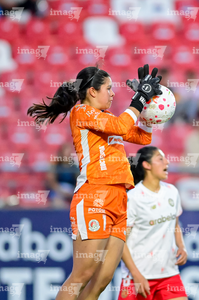 San Luis Potosí, San Luis Potosí, 12 de octubre de 2025. Casandra Cuevas, durante el partido correspondiente a la jornada 15 del torneo Apertura 2025 de la Liga BBVA MX Femenil, entre el Atlético San Luis y las Diablas Rojas del Toluca, realizado en el estadio Alfonso Lastras. Foto: Imago7/ Olimpia Puga