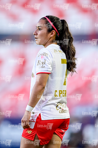 San Luis Potosí, San Luis Potosí, 12 de octubre de 2025. Cinthya Peraza, durante el partido correspondiente a la jornada 15 del torneo Apertura 2025 de la Liga BBVA MX Femenil, entre el Atlético San Luis y las Diablas Rojas del Toluca, realizado en el estadio Alfonso Lastras. Foto: Imago7/ Hugo Martinez
