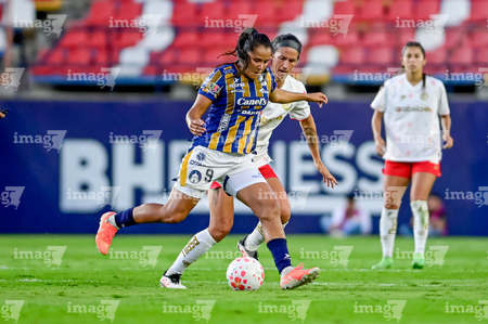 San Luis Potosí, San Luis Potosí, 12 de octubre de 2025. Farlyn Caicedo, durante el partido correspondiente a la jornada 15 del torneo Apertura 2025 de la Liga BBVA MX Femenil, entre el Atlético San Luis y las Diablas Rojas del Toluca, realizado en el estadio Alfonso Lastras. Foto: Imago7/ Olimpia Puga