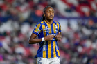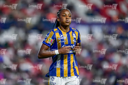 San Luis Potosí, San Luis Potosí, 12 de octubre de 2025. Farlyn Caicedo, durante el partido correspondiente a la jornada 15 del torneo Apertura 2025 de la Liga BBVA MX Femenil, entre el Atlético San Luis y las Diablas Rojas del Toluca, realizado en el estadio Alfonso Lastras. Foto: Imago7/ Hugo Martinez