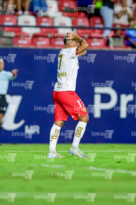 San Luis Potosí, San Luis Potosí, 12 de octubre de 2025. Cinthya Peraza en festejo de gol, durante el partido correspondiente a la jornada 15 del torneo Apertura 2025 de la Liga BBVA MX Femenil, entre el Atlético San Luis y las Diablas Rojas del Toluca, realizado en el estadio Alfonso Lastras. Foto: Imago7/ Hugo Martinez