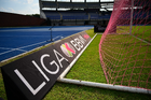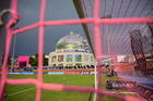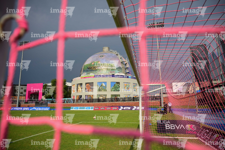 Querétaro, Querétaro, 15 de octubre de 2025. Red de portería de la Campaña Rosa para la concientización del Cáncer de Mama, durante el partido correspondiente a la jornada 16 del torneo Apertura 2025 de la Liga BBVA MX Femenil, entre el Club Querétaro y la Máquina Celeste del Cruz Azul, realizado en el estadio Olímpico Alameda. Foto: Imago7/ Alexis Chavez