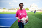 Querétaro, Querétaro, 15 de octubre de 2025. Embajadora de la Campaña Rosa para la concientización del Cáncer de Mama, durante el partido correspondiente a la jornada 16 del torneo Apertura 2025 de la Liga BBVA MX Femenil, entre el Club Querétaro y la Máquina Celeste del Cruz Azul, realizado en el estadio Olímpico Alameda. Foto: Imago7/ Alexis Chavez