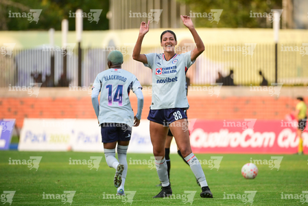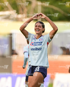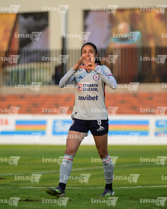 Querétaro, Querétaro, 15 de octubre de 2025. Daniela Calderón en festejo de gol, durante el partido correspondiente a la jornada 16 del torneo Apertura 2025 de la Liga BBVA MX Femenil, entre el Club Querétaro y la Máquina Celeste del Cruz Azul, realizado en el estadio Olímpico Alameda. Foto: Imago7/ Alexis Chavez