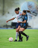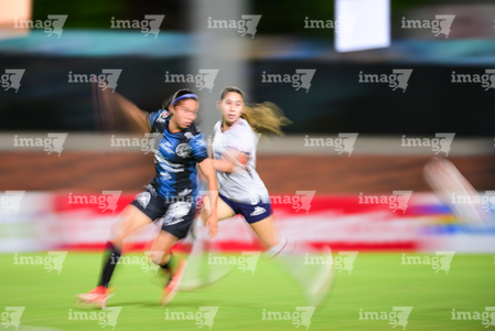 Querétaro, Querétaro, 15 de octubre de 2025. Niomi Grimaldo y Emily Flores, durante el partido correspondiente a la jornada 16 del torneo Apertura 2025 de la Liga BBVA MX Femenil, entre el Club Querétaro y la Máquina Celeste del Cruz Azul, realizado en el estadio Olímpico Alameda. Foto: Imago7/ Alexis Chavez