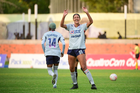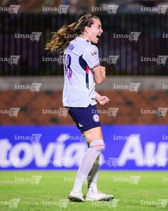 Querétaro, Querétaro, 15 de octubre de 2025. Ana Lucía Martínez en festejo de gol, durante el partido correspondiente a la jornada 16 del torneo Apertura 2025 de la Liga BBVA MX Femenil, entre el Club Querétaro y la Máquina Celeste del Cruz Azul, realizado en el estadio Olímpico Alameda. Foto: Imago7/ Alexis Chavez