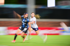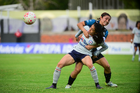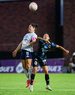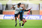 Querétaro, Querétaro, 15 de octubre de 2025. Deneisha Blackwood y Valeria Valdez, durante el partido correspondiente a la jornada 16 del torneo Apertura 2025 de la Liga BBVA MX Femenil, entre el Club Querétaro y la Máquina Celeste del Cruz Azul, realizado en el estadio Olímpico Alameda. Foto: Imago7/ Alexis Chavez