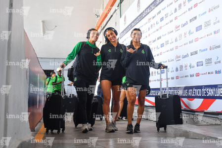 San Luis Potosí, San Luis Potosí, 1 de noviembre de 2025. Frida Cussin, Sasha Pickard y Karla Rodríguez, durante el partido correspondiente a la jornada 17 del torneo Apertura 2025 de la Liga BBVA MX Femenil, entre el Atlético San Luis y las Guerreras de Santos Laguna, realizado en el estadio Alfonso Lastras. Foto: Imago7/ Olimpia Puga