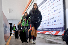 San Luis Potosí, San Luis Potosí, 1 de noviembre de 2025. Amina Bello y Vivian Ikechukwu, durante el partido correspondiente a la jornada 17 del torneo Apertura 2025 de la Liga BBVA MX Femenil, entre el Atlético San Luis y las Guerreras de Santos Laguna, realizado en el estadio Alfonso Lastras. Foto: Imago7/ Olimpia Puga