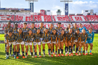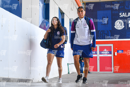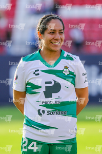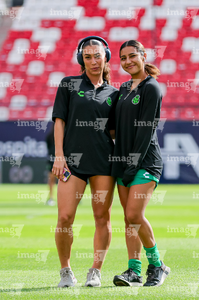 San Luis Potosí, San Luis Potosí, 1 de noviembre de 2025. Protocolo, durante el partido correspondiente a la jornada 17 del torneo Apertura 2025 de la Liga BBVA MX Femenil, entre el Atlético San Luis y las Guerreras de Santos Laguna, realizado en el estadio Alfonso Lastras. Foto: Imago7/ Olimpia Puga