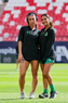 San Luis Potosí, San Luis Potosí, 1 de noviembre de 2025. Karla García y Aurora Suárez, durante el partido correspondiente a la jornada 17 del torneo Apertura 2025 de la Liga BBVA MX Femenil, entre el Atlético San Luis y las Guerreras de Santos Laguna, realizado en el estadio Alfonso Lastras. Foto: Imago7/ Olimpia Puga