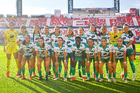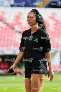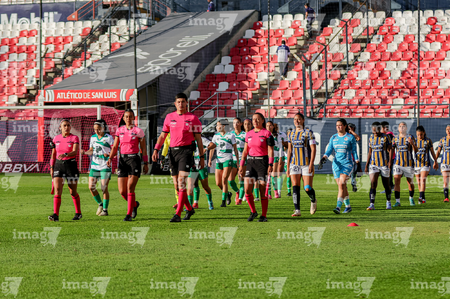 San Luis Potosí, San Luis Potosí, 1 de noviembre de 2025. Protocolo, durante el partido correspondiente a la jornada 17 del torneo Apertura 2025 de la Liga BBVA MX Femenil, entre el Atlético San Luis y las Guerreras de Santos Laguna, realizado en el estadio Alfonso Lastras. Foto: Imago7/ Hugo Martinez