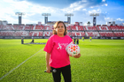San Luis Potosí, San Luis Potosí, 1 de noviembre de 2025. Embajadora de la Campaña Rosa para la concientización del Cáncer de Mama, durante el partido correspondiente a la jornada 17 del torneo Apertura 2025 de la Liga BBVA MX Femenil, entre el Atlético San Luis y las Guerreras de Santos Laguna, realizado en el estadio Alfonso Lastras. Foto: Imago7/ Olimpia Puga