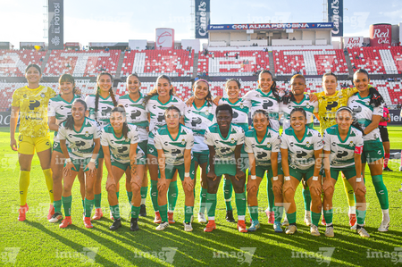 San Luis Potosí, San Luis Potosí, 1 de noviembre de 2025. Foto de equipo de Santos, durante el partido correspondiente a la jornada 17 del torneo Apertura 2025 de la Liga BBVA MX Femenil, entre el Atlético San Luis y las Guerreras de Santos Laguna, realizado en el estadio Alfonso Lastras. Foto: Imago7/ Olimpia Puga