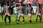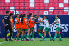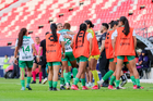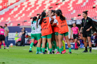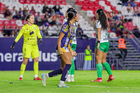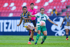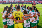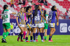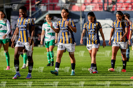 San Luis Potosí, San Luis Potosí, 1 de noviembre de 2025. Jugadoras de Santos femenil, durante el partido correspondiente a la jornada 17 del torneo Apertura 2025 de la Liga BBVA MX Femenil, entre el Atlético San Luis y las Guerreras de Santos Laguna, realizado en el estadio Alfonso Lastras. Foto: Imago7/ Hugo Martinez