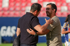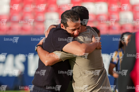 San Luis Potosí, San Luis Potosí, 1 de noviembre de 2025. Jhonatan Lazcano, director técnico e Ignacio Quintana, director técnico, durante el partido correspondiente a la jornada 17 del torneo Apertura 2025 de la Liga BBVA MX Femenil, entre el Atlético San Luis y las Guerreras de Santos Laguna, realizado en el estadio Alfonso Lastras. Foto: Imago7/ Hugo Martinez